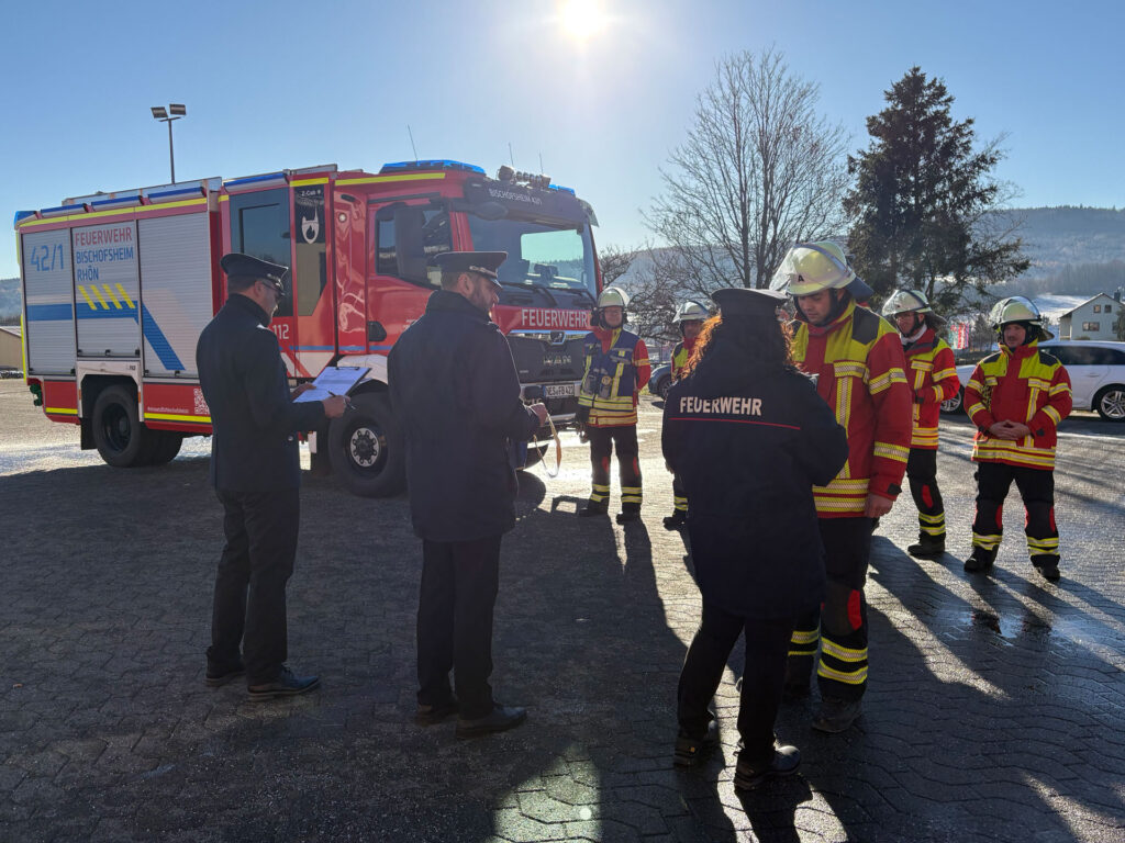 Klirrende Kälte und Schneefall, das beeindruckt die Feuerwehr nicht. Unter typisch Rhöner Bedingungen haben die Feuerwehren aus Wegfurt und Bischofsheim auf ihre Leistungsprüfung zur technischen Hilfeleistung hingearbeitet und wurden dafür am Samstag mit ihrem Abzeichen belohnt. Mit vereinten Kräften gewöhnten sich die Feuerwehrleute so auch an das HLF 10, das hierbei zum ersten Mal eingesetzt wurde.